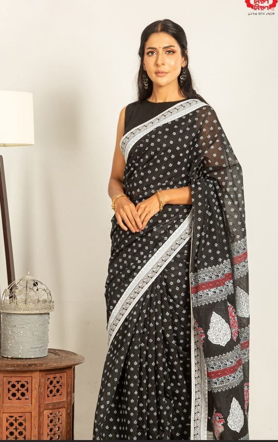 Black Color Half Silk Sharee – ক্লাসিক সৌন্দর্যের প্রতিচ্ছবি